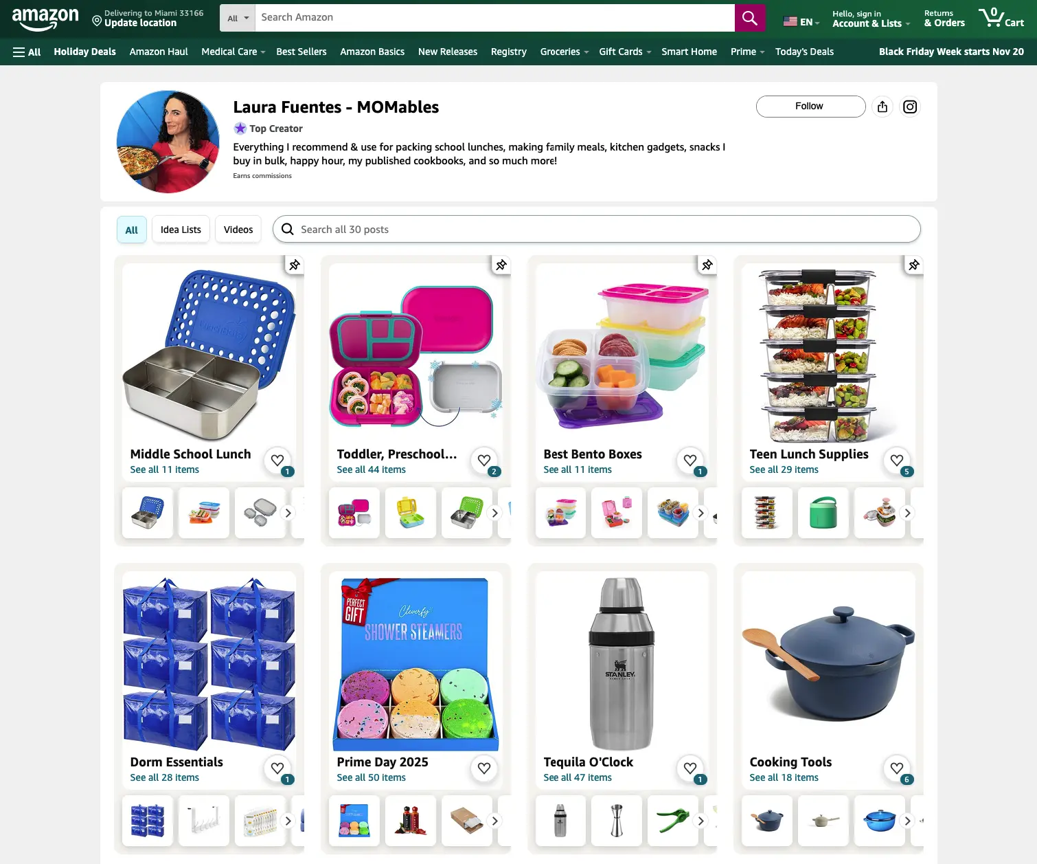 The following image is an example of a storefront from Amazon influencer Laura Fuentes.
