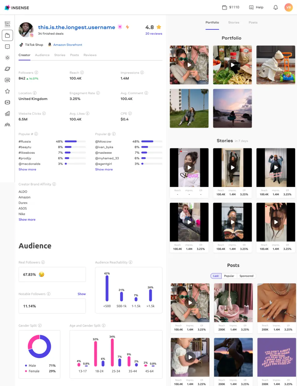 Insense will provide you with a clear overview of how many creators have requested to work with you, what their price is, as well as what their metrics look like.