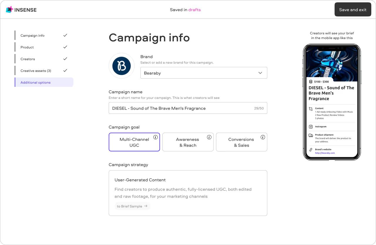 Build a detailed brief inside Insense that gives creators exactly what they need to produce usable content.